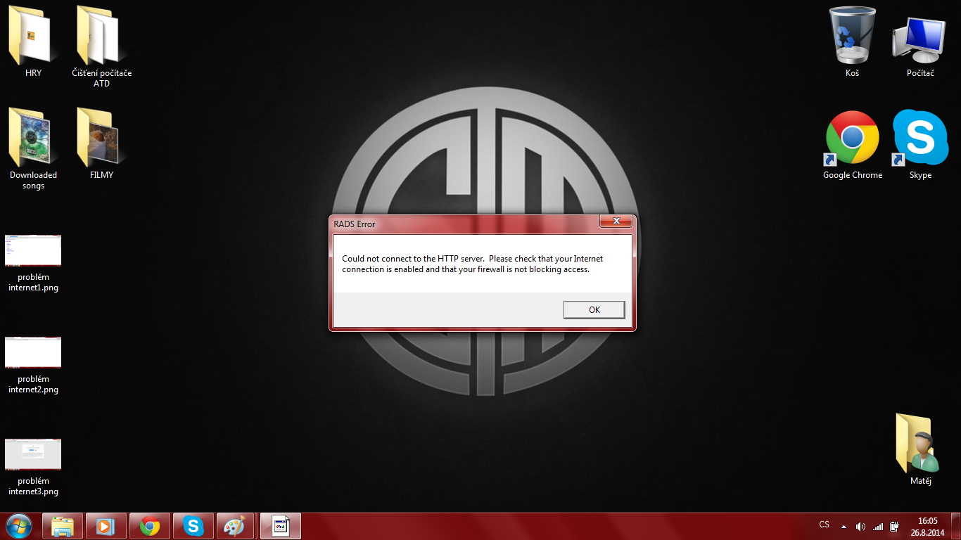 Zdravím,dneska jsem šel na internet a google nefunguje.To samé dělá youtube.Facebook je zobrazen divně a u LoL mi to píše Rads erory.Na jiném počítači dělá to samé(ale na mobilním telefonu Lumia 630 vše funguje bez problémů,samozdřejmě kromě LoL,to se na mobilu hrát nedá