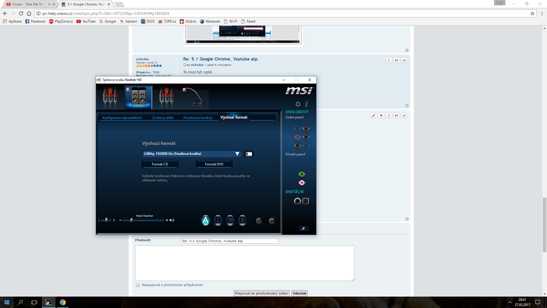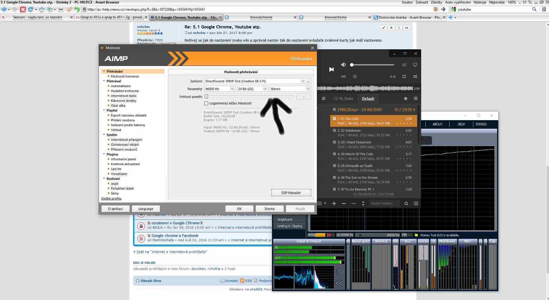 Jak máš pravý spodní vlastnosti tak přepni na 5.1.Aktivuj správu basů.Co se skrývá pod prostorovou korekcí a výchozím formátem?