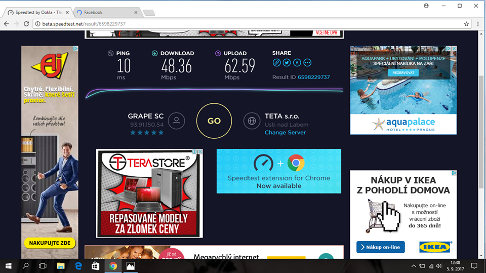 Ahoj, už nějakou dobu jsem měl problém s rychlostí připojení a stabilitou připojení k mému ntb. Mám poskytovatele Grape as. a údajně by měl jít internet až 200 Mb/s, většinou jsem doma jenom já a jeden z rodičů, ti ale moc na internet nechodí, maximálně kouknou na emai. Nemám ani nějaký šunt router, mám https://www.alza.cz/tp-link-tl-wr1043nd ... toChange=1 . Hraju dost hry a dost to vadí.. většinou to není malé zvýšení pingu, ale rovnou se mi zvýší na pár tisíc, většinou rychle zkusím spustit internet, jestli to není serverem, ale nejde ani načíst seznam. Speedtest: http://beta.speedtest.net/result/6568590447