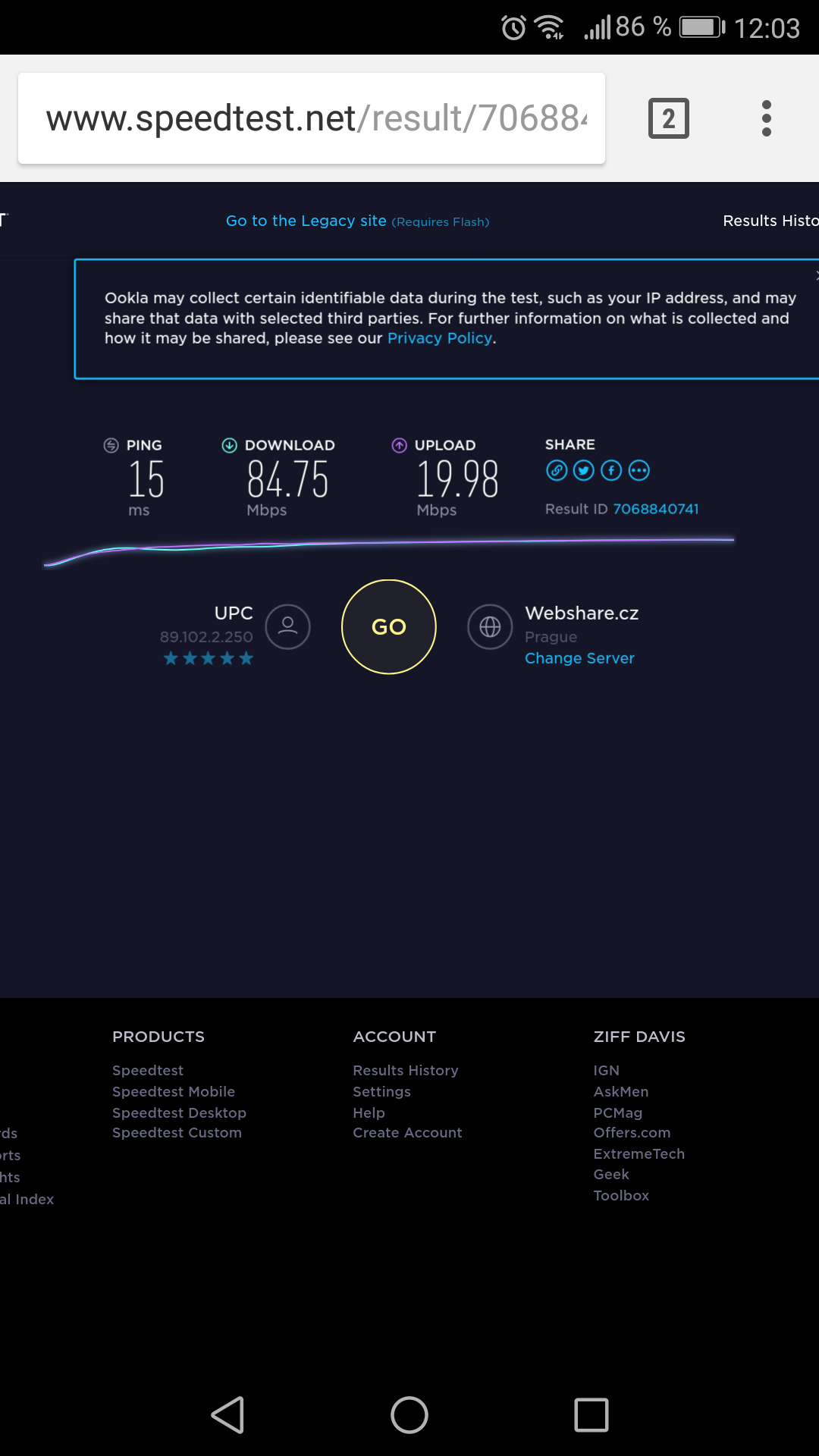 Co se tyce podrobnosti - zkusil jsem se pripojit pres dva telefony Huawei P10 Lite a P9 Lite. Na prvnim se wifi vubec nepripojila (screen 1), hlasi dlouhou prodlevu ve spojeni. Na druhem zarizeni jsem se k wifi pripojil a surfoval bez problemu a spustit speed test (screen 2).