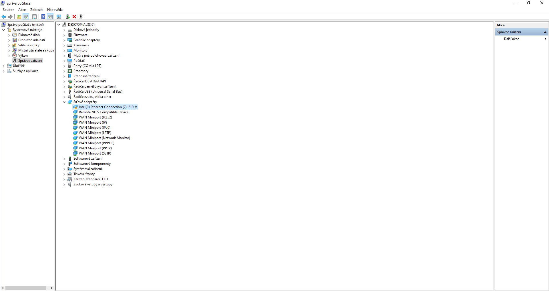 Po odinstalování a resetu se zase ukáže intel ethernet 1219