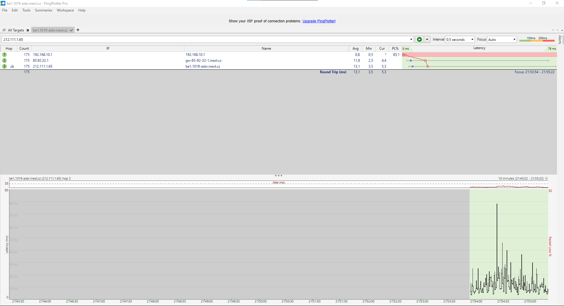 Skús v pingplotteri zmeniť interval z 0,5 na 2,5 sekundy, výsledky budú zrejme lepšie, 0.5 je vraj príliš agresívne
