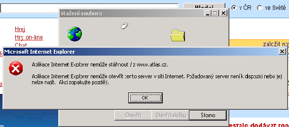 Najednou mi v IE nejde načíst několik adres z mých oblíbených(asi 5),která jsem před pár dny bez problémů prohlížel-naprosto neškodné- atlas,mobilmania,atd.V Firefoxu je načtu bez problémů.Hází mi to hlášky(viz příloha).Poraďte prosím,dík