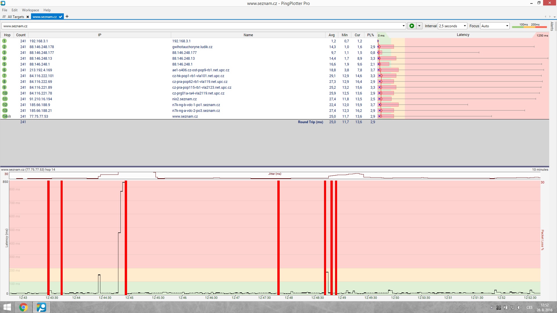 Zdravím, od pátku mám problém s rychlostí a výpadky internetu. Mám mít rychlost D: 20Mbps/ U: 2Mbps (agregace 1:10) a vždycky jsem těch 19Mbps minimálně naměřil. Začalo to z ničeho nic, v nastavení jsem se nevrtal. Teď sotva naměřím 4-5Mbps, když to zkouším několikrát denně. Včera jsem např. měl zapnutou hru a ping mi skákal až na 1000ms a několikrát mě to vykoplo úplně. Rád bych věděl, kde je problém, takže se obracím na odborníky.