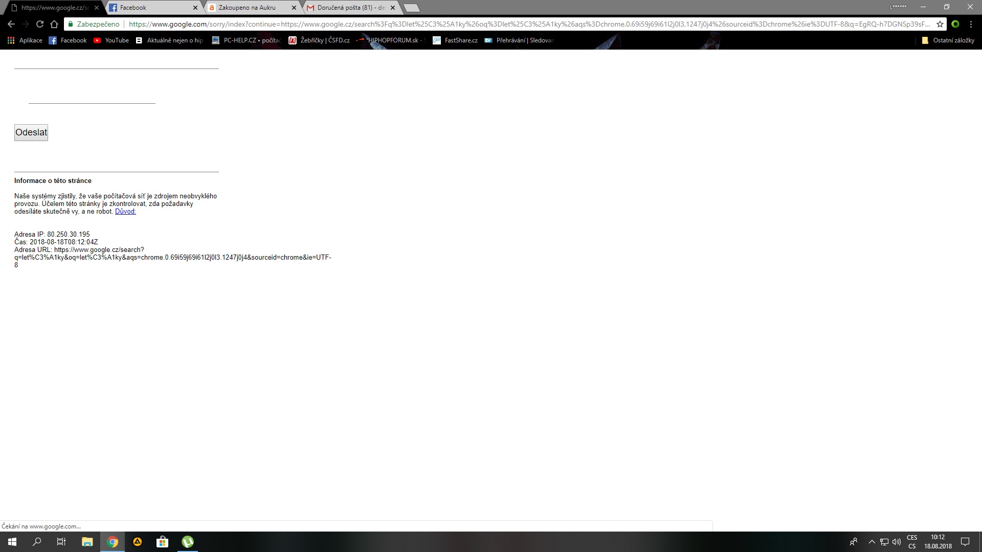 Už je problém vyřešen. Samo od sebe to přestalo dělat. Řekl bych, že nějaký problém na straně Googlechrome, skrze hodně požadavků na google chrome. Řešením by byla neveřejné IP adresa.