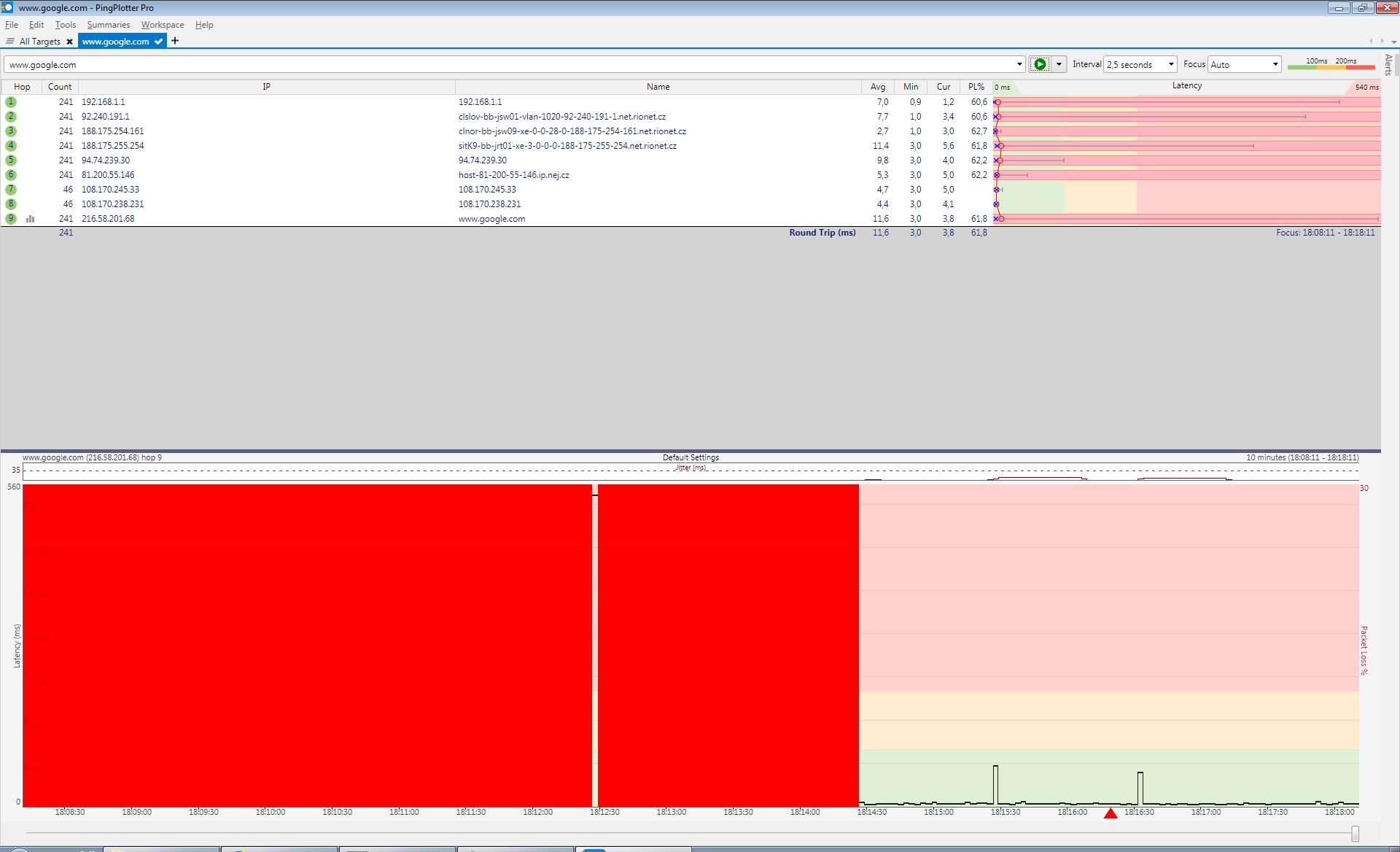 Trochu podezírám poskytovatele, že má v noci výpadky.