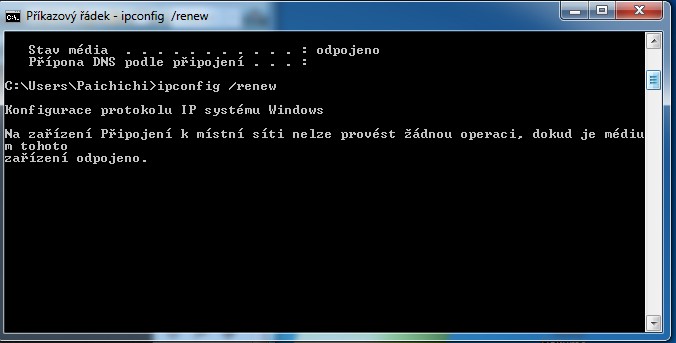 Tak k chybě při bezdrátovém připojení nakonec došlo, ale trvalo to mnohem déle, než obvykle (asi po 4 hodinách). Zkusila jsem příkazy a vyhodilo mi to hlášky viz screeny. Vím, že by bylo nejjednodušší počítač připojit kabelem, ale bohužel je to kvůli umístění routeru dost dobře nemožné (nebo alespoň ne na delší dobu). :(