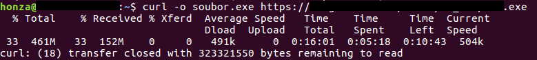 na svém webu nabízím návštěvníkům ke stažení jeden exe soubor (460 MB) ale, když si ho chce někdo stáhnout, tak se stáhne přibližně jen 30 % toho souboru (cca 150 MB). Obrátil jsem se i na podporu webhostingu (Wedos) ale jejím technikům soubor jde stáhnout a tím pádem neví z jakého důvodu to jiným nejde stáhnout. V příloze je i chyba, kterou mi napsala v Linuxu funkce curl.