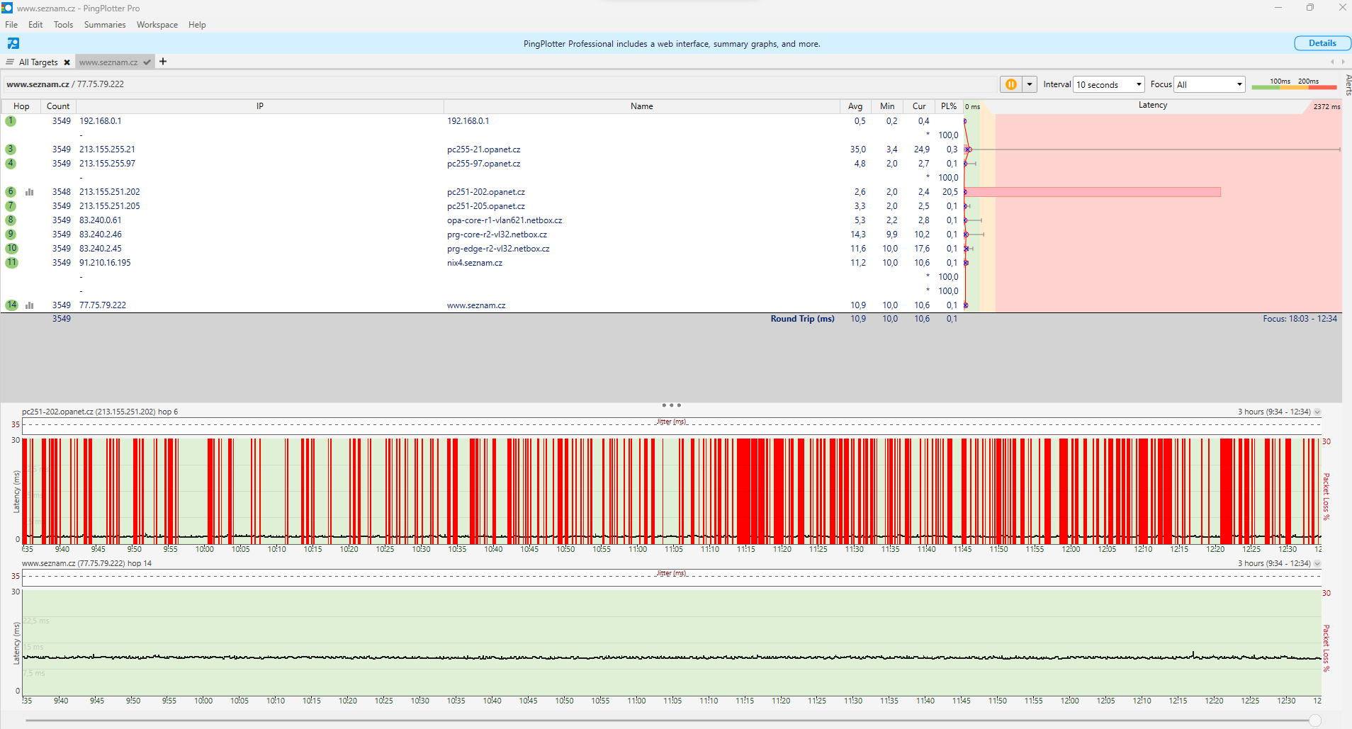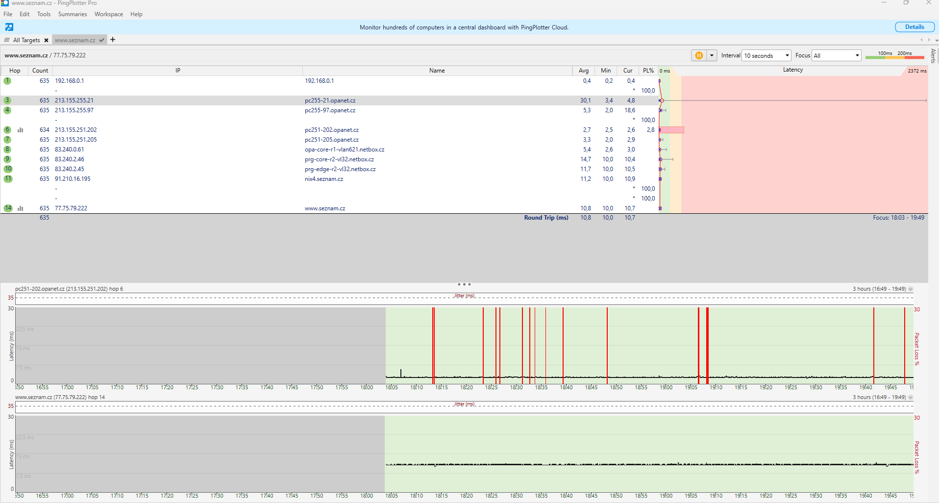 Bylo to neskutečně otravné, myslel jsem, že je problém u mě a nakonec se ukázalo, že problém byl u poskytovatele... Ale jak vidím, tak můžu být rád za poskytovatele, jakého mám, v případě potíží mu stačí poslat pingplotter a on si to vyřeší :D