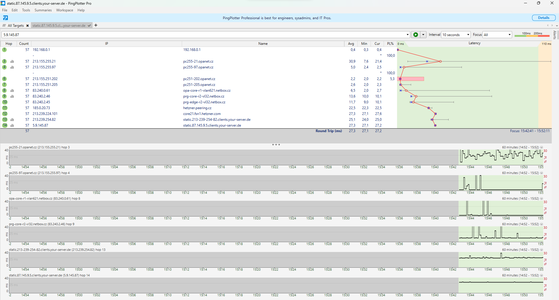 Z obu screenů - jednak hop 6, kde je vidět jistá ztráta paketů. Ale co mě zaráží je hop 3, kde je výskok pingu přes 2 sec. Je ovšem otázka, zda tohle má vliv na hru, či discord, protože na seznam to vliv nemá.