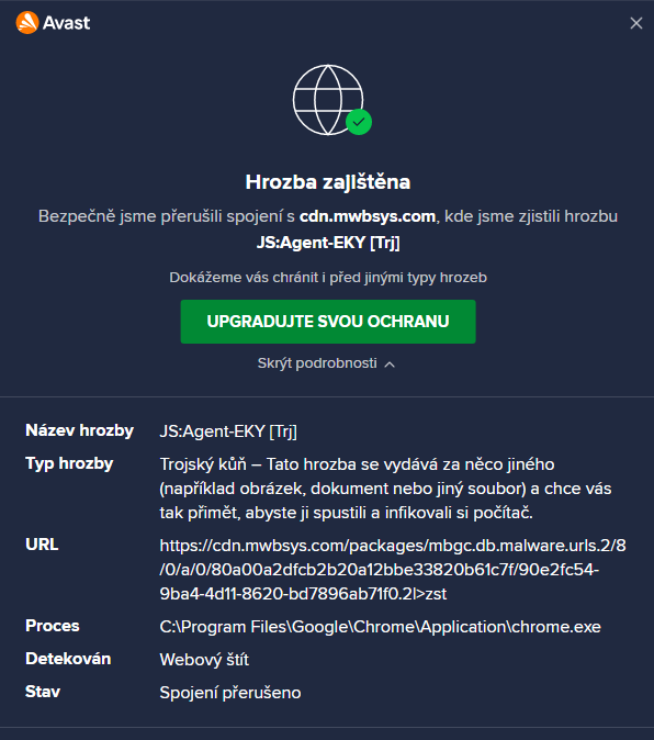 Tedy se nejspis zblaznil Avast a hlasi falesnou hrozbu, o ktere tvrdi ze ji zastavil.
