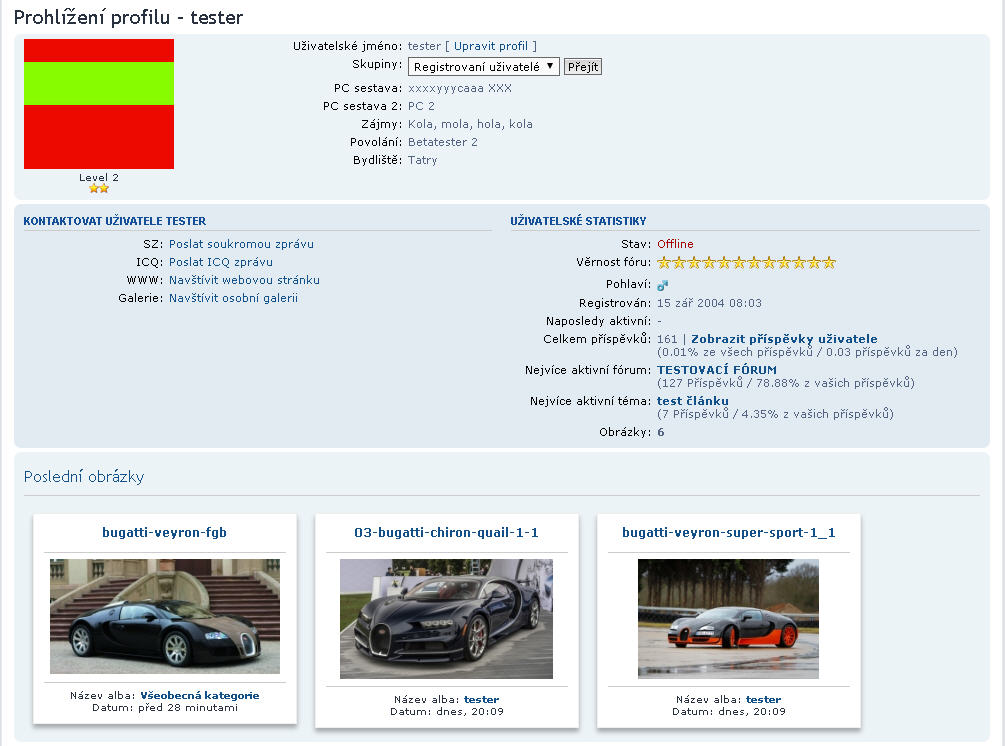V uživatelském profilu se zobrazují 3 poslední nahrané obrázky: Věřím, že se nové rozšíření "galerie" bude líbit a najde si u vás, našich uživatelů, své uplatnění.