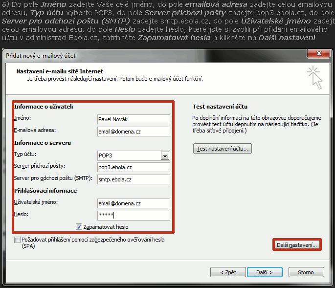 zatrženo Server pro odchozí poštu (SMTP) požaduje ověření