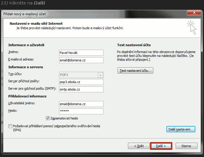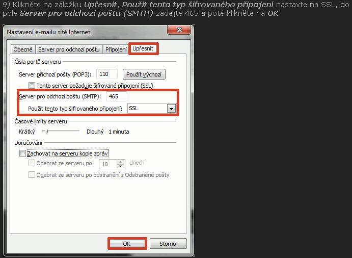 SMTP: port 587 a TAKÉ šifrovaní SSL (ne Automatické)