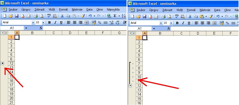 Ahojt. Chtěl bych se vás zeptat, jak docílím v programu Excel 2003 jevu který je na obrázku v příloze. Jedná se o jakési skrytí některých řádků, které jdou později "rolovat" či "rozbalovat"