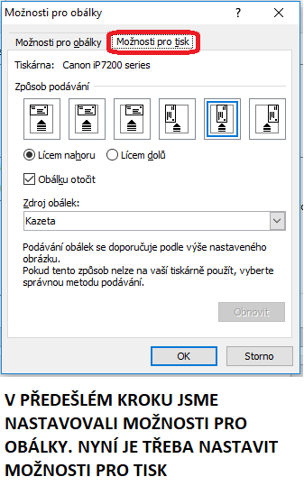 Nějak jsem pozapomněl, že mám v NTB nainstalovaný MS Office Word 2007. Nenapadlo mne se tam podívat, jestli je tam možné tisknout obálky. U huráá. Povedlo se mi vytisknout obálku. A protože mám radost a chci se o ni podělit s ostatními, tak přikládám 5 nascreenovaných obrázků, jakým postupem jsem to udělal. Snad z toho budou mít užitek i ostatní, kteří řeší stejný problém.
