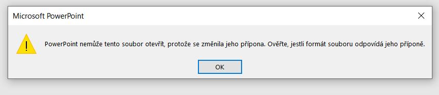 Změna přípony fungovala u pps > ppt, variantě ppsx > pptx už se Powerpoint brání: