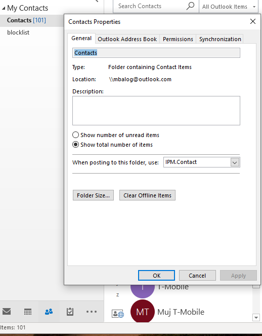 Upřímně pochybuji, protože kdyby byla příčina na straně formátu a položek kontaktů, nebyl by správně zobrazený a synchronizovaný v ostatních aplikacích a na serveru Microsoftu (webové rozhraní Outlook a Lidé). Integrovaný klient Windows Mail, Skype, nebo People nemá s kontakty sebemenší problém a to ani u takových, které obsahují další doplňkové informace, jako např.: poloha, nebo více adres. Navíc většina z kontaktů obsahuje telefonní číslo, jméno a přijmení. To už mne také napadlo a zkusil jsem vytvořit 10 testovacích kontaktů ... pouze 1 z 10 se dostal do kontaktů Outlooku. Samozřejmě jsou v telefonu, webovém rozhraní, ale do Outlooku se dostal pouze jeden jediný (prostý Test1, Test2, Test3 ... Test10) z důvodu vyloučení chyby formátu apod. jsem přidával z webového rozhraní i telefonu. Proč se tak děje mi zatím nikdo nedokázal vysvětlit.