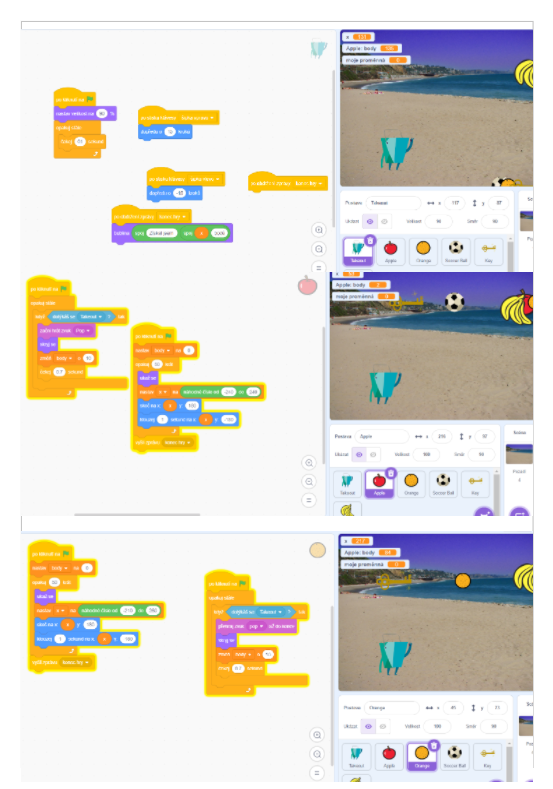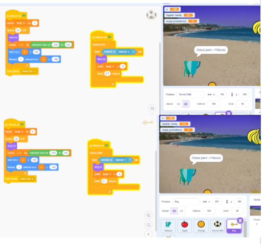 tvořila jsem hru ve Scratch a mám již většinu dle zadání ze školy splněnou. Chybí mi tyto dva body doplnit. Prosím, poradil by mi někdo. Posílám PrtSc celé mé hry.