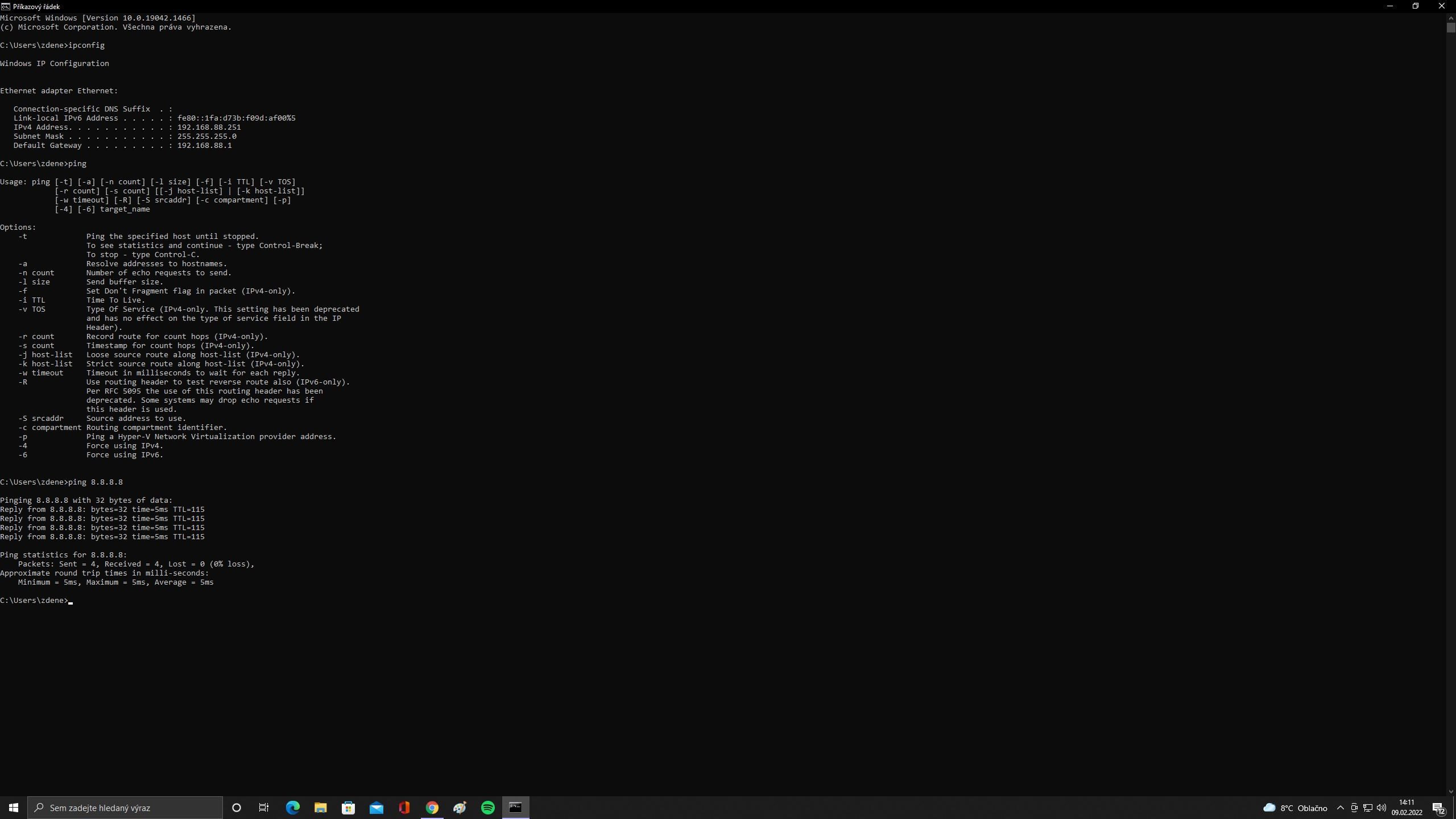Pak ping + ta tvoje adresa.. Můžeš zkusit i ping 8.8.8.8 a ukaž nám výsledek.