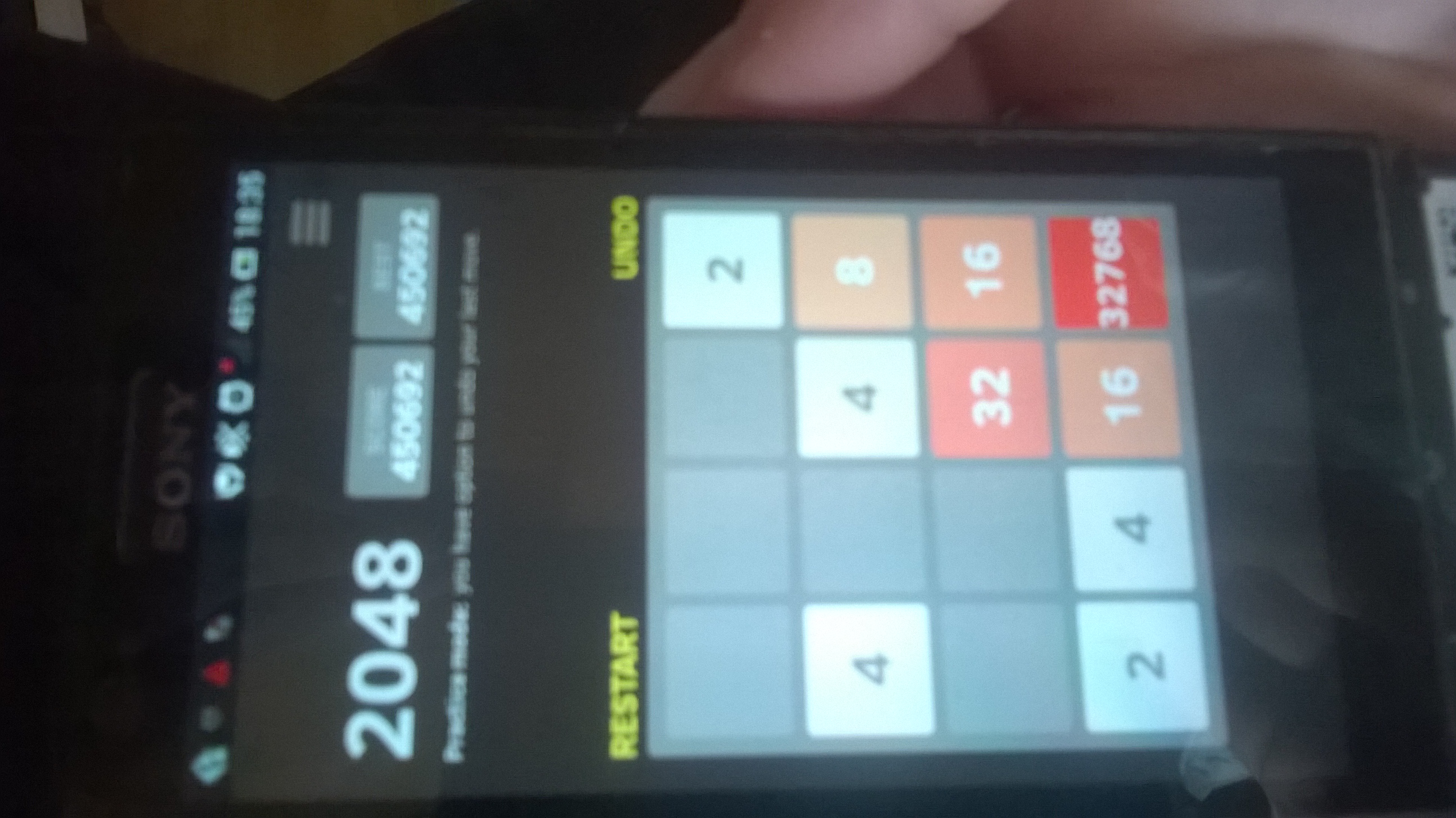 je to prace moji sestry, practice mod znamena asi to, ze to jde pomoci tlacitka UNDO vratit o krok zpet (ale ne, kdyz skonci hra). Ale to tlacitko ani jednou nepouzila, takze to hrala jako klasickou hru 2048 v normalnim modu