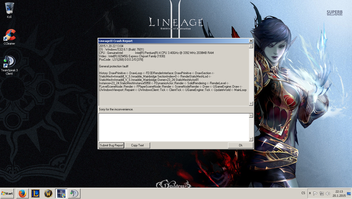 Lineage 2 crash report :(,plz pomoc