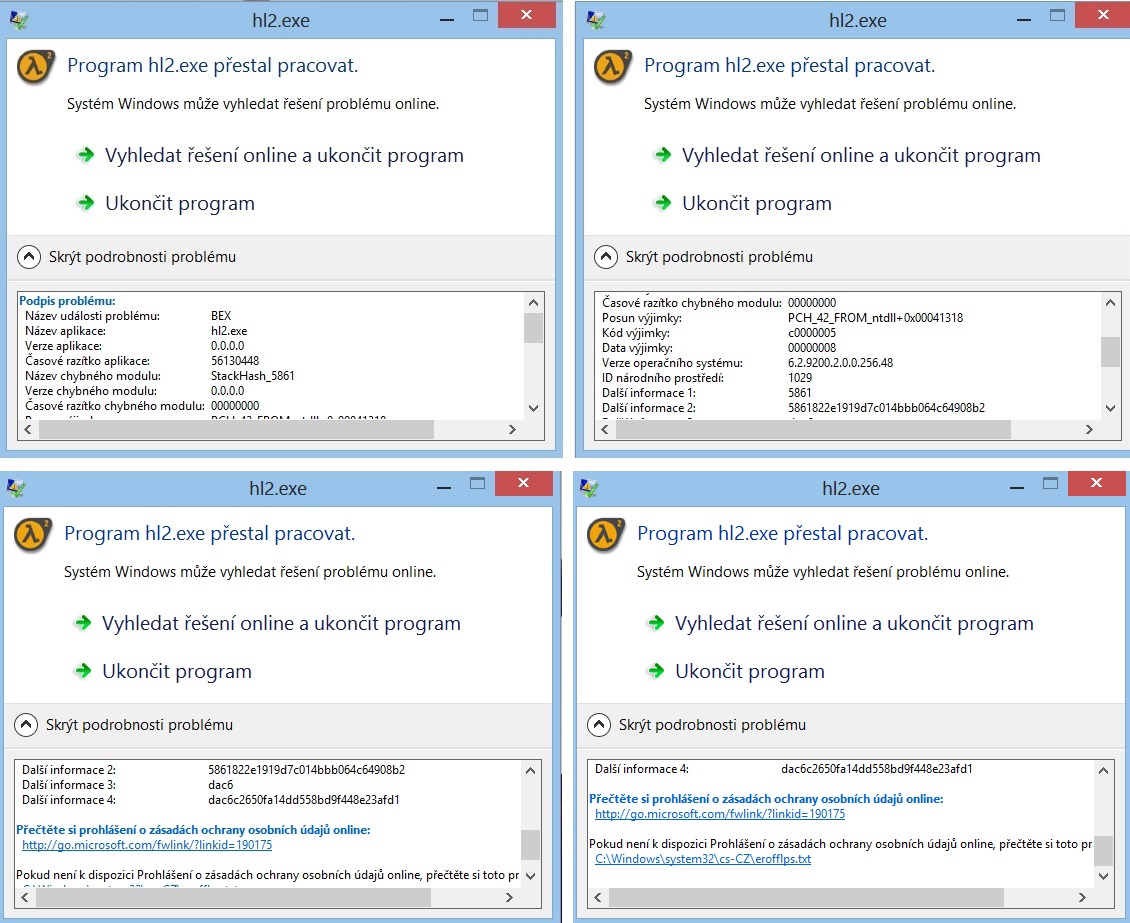hl2.exe přestal pracovat