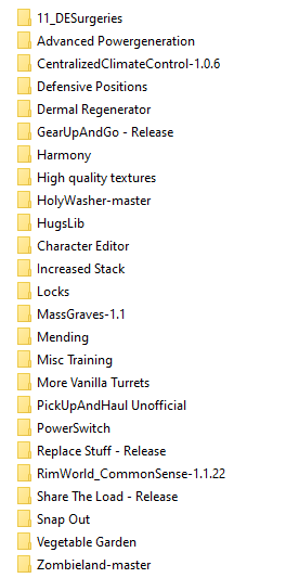 Posílám screenshot kolonie, vedení klimatizace a seznam módu (jestli jsou ještě všechny aktuální, protože jsem to tam dával před cca rokem), které dle mého o dost zlepší hru, ale neudělají ji jednodušší tak, aby to bylo jako cheaty. Samozřejmě třeba zombie mod tam mám proto, protože s takovou kolonií mě už nic moc nepřekvapí, ale když k útočícím broukům a frakcím přidáš 300 zombie, to už jo.