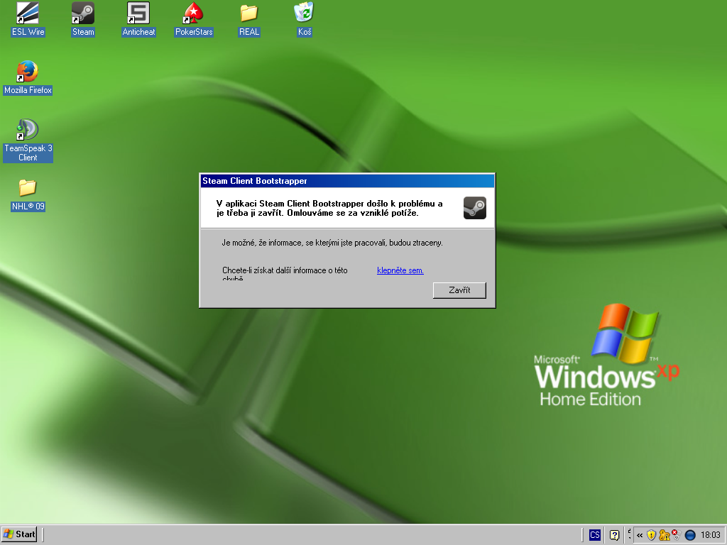 najela mi tahle hláška (viz příloha),když jsem aktualizoval steam...(mám Windows XP).Zkoušel jsem restart pc,reinstall .....