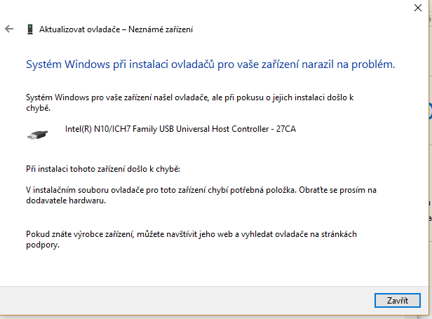 Když chci ten ovladač přes správce zařízení aktualizovat, tak mi to háže chybu (V instalačním souboru ovladače pro toto zařízení chybí potřebná položka).