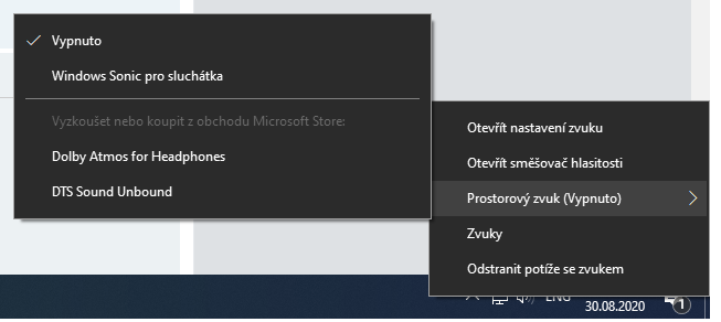 • Win 10 sluchátka po připojení ztrácí hlasitost