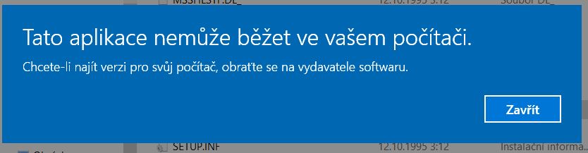 Spust to na 32bit edici Windows, je to 16bit aplikace (Win 3.11/Windows95).