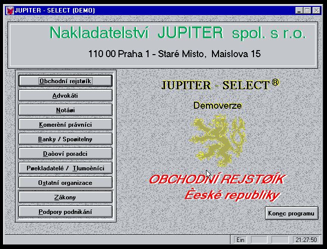 dostalo se mi do rukou CD s názvem Jupiter Select souhrnná databáze ČR. Vydal Jupiter Praha.