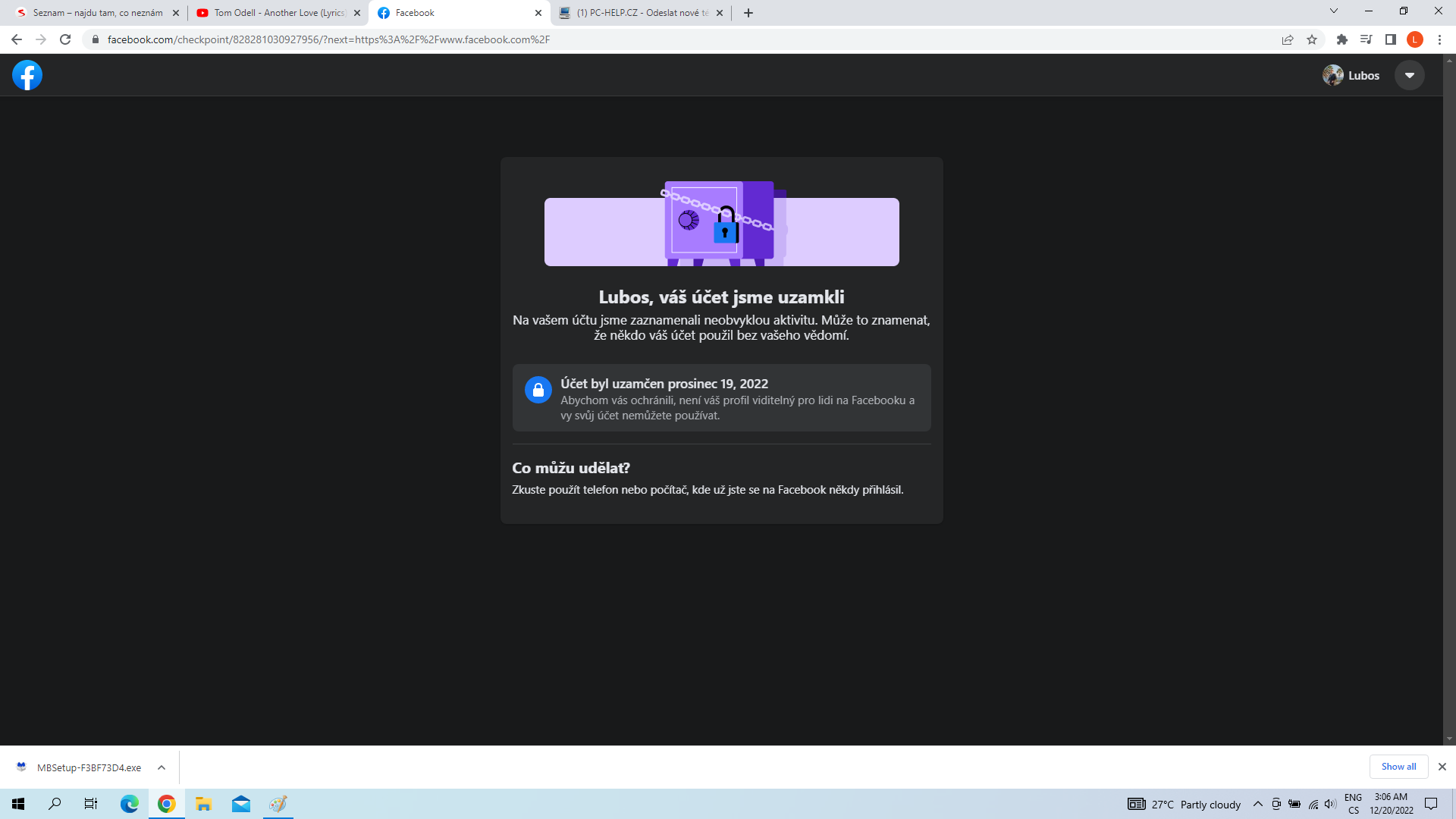Z jiných (starších) zařízení jsem se už snažil přihlásit, ovšem opět to napsalo, že facebook je uzamčen.