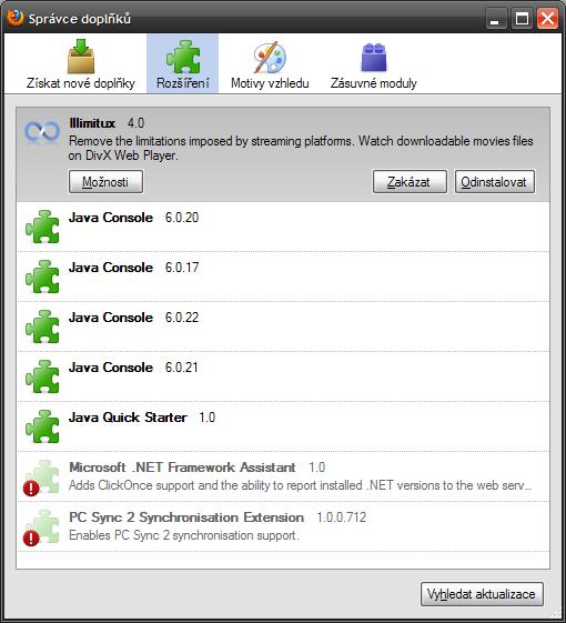 No u těch dvou položek mi to píše: Není kompatibilní s aplikací Firefox 3.6.12 :-(