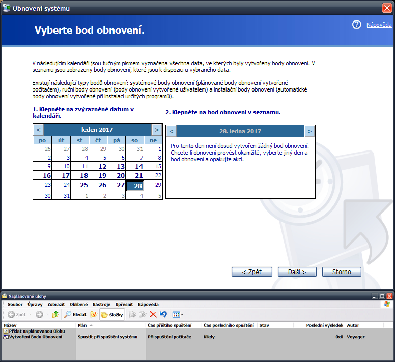 koukal jsem do naplánovaných úloh a spustí se to. Hlášku nemám. Kouknu se do Obnovení systému a bod se nevytvoří. Posílám slepený screenshot. Děkuji za rady.