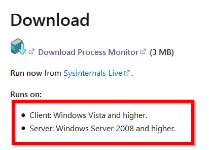 Na webu Procmonu je jasne uvedeno, ze vyzaduje Windows Vista a vyssi verze Windows.