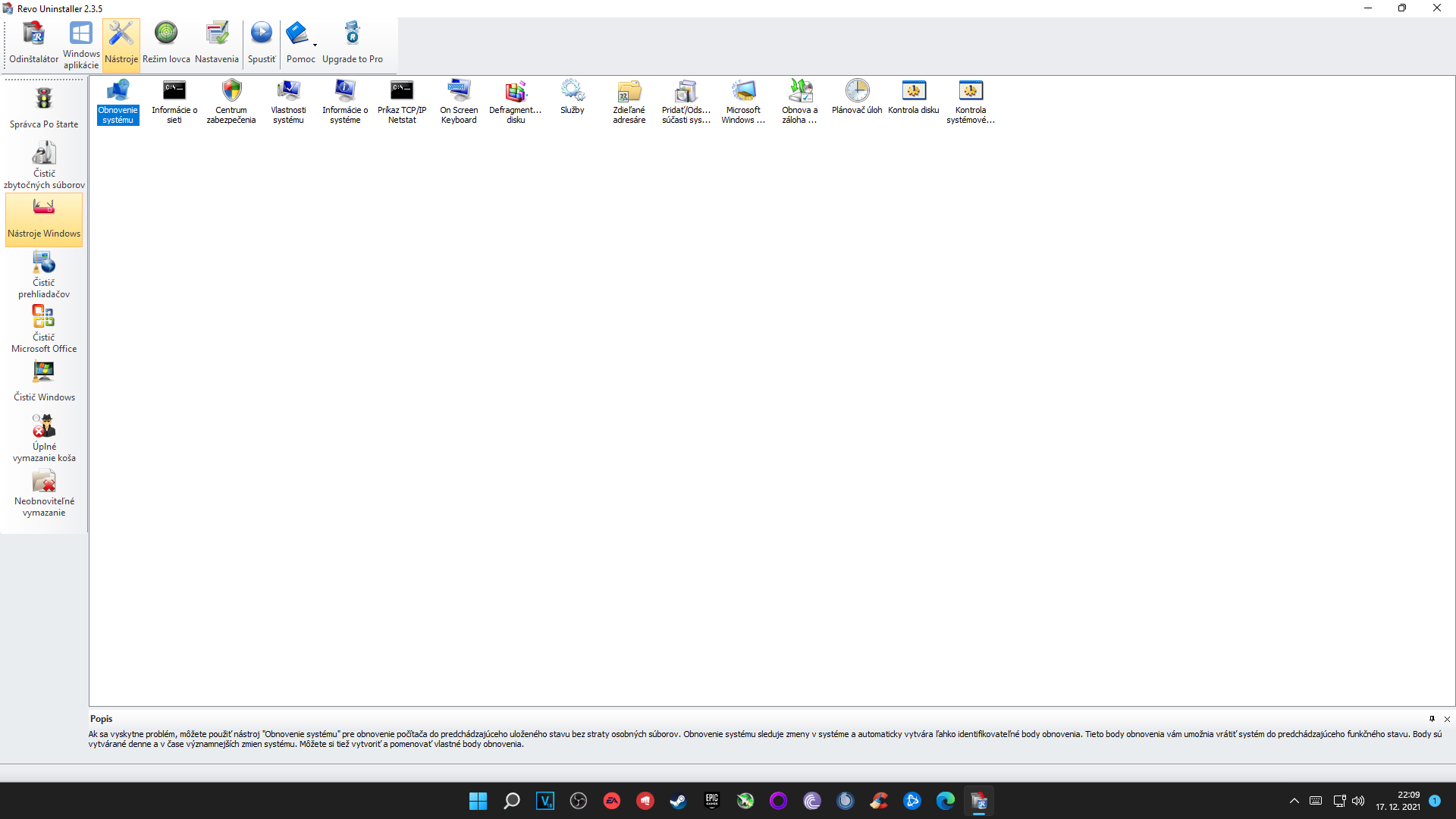 Aha to som nevedel diky inak btw klikol som na obnovenie systemu v revo programe aj ked mi potom windows napisal že nedokončil obnovu úplne že všetky subory neboli obnovené tak na ten McAfee to asi platilo pretože už nebol v spravcovy úloh a dal sa odznova nainštalovať zaroven aj odstraniť v tento počitač c program files common McAfee takže diky za pomoc velmi pekne dakujem.