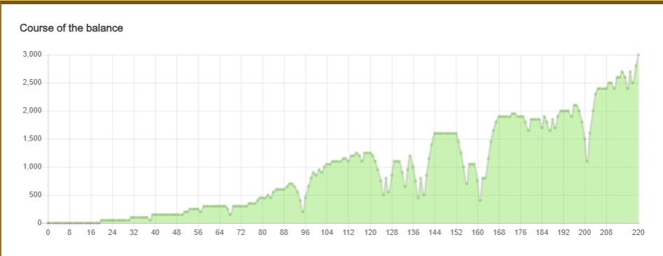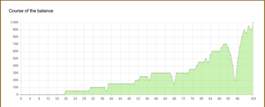 Použil jsem obyčejný systém d´Alembert. (při prohře jednotka nahoru, výhra jednotka dolu).