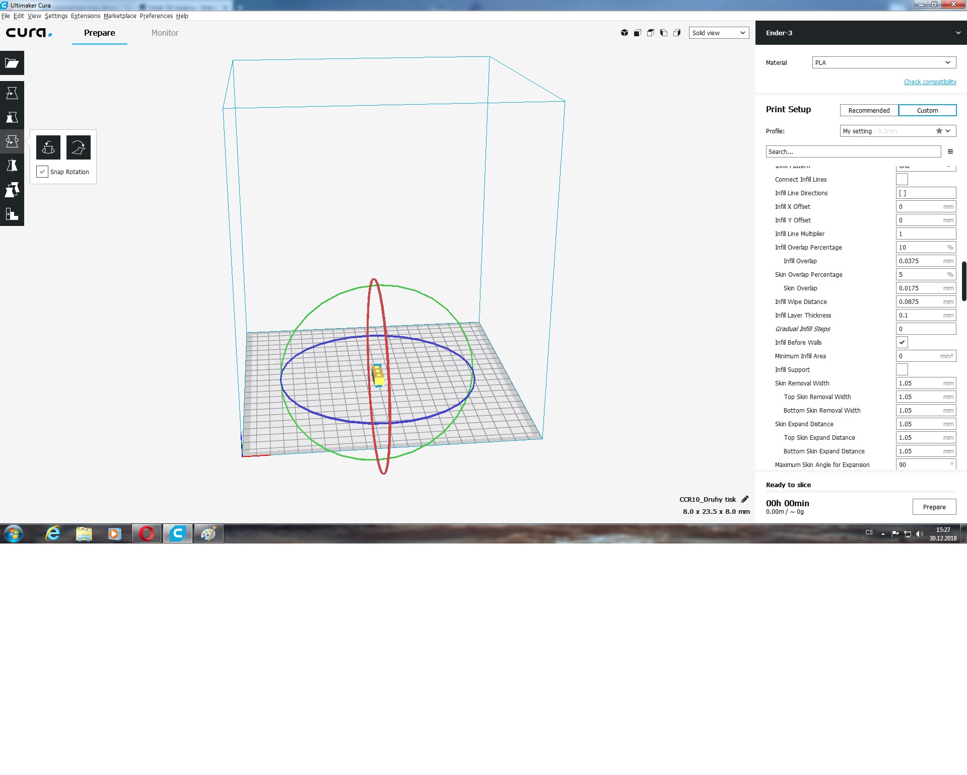 Je to dobré, díry jsou již krásně kulaté. Ještě bych měl otázku, čím se nastavuje funkce, kdy 3D tiskárna nejdřív "objede" model určený k tisknutí a teprve potom se již věnuje samotnému modelu?