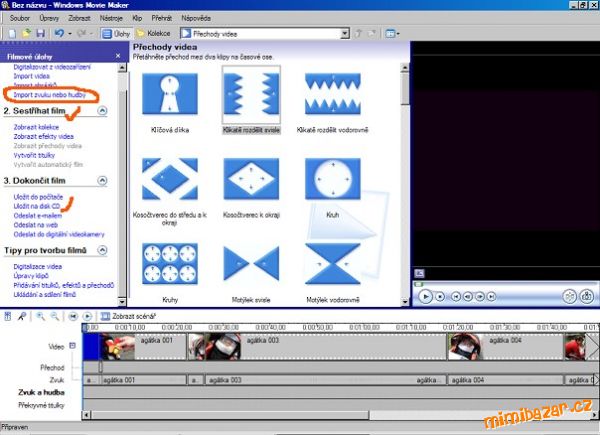 To modré na to obrázku jsou ty přechody. Dole budeš mít filmový pás se snímky a tam kde tem přechod má být ho přetáhneš myší. Ty přechody neděláš, jsou hotové!