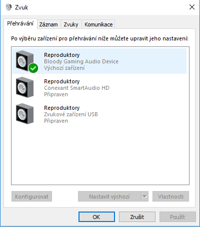 Ne u všeho je ten samý problém. Stalo se to následovně. Přeinstaloval jsem ovladače protože mi nefungoval nový mikrofon. Potom se stalo tohle. Ještě větší blbost je že ve zvuku nemůžu ani nastavovat výchozí zařízení.