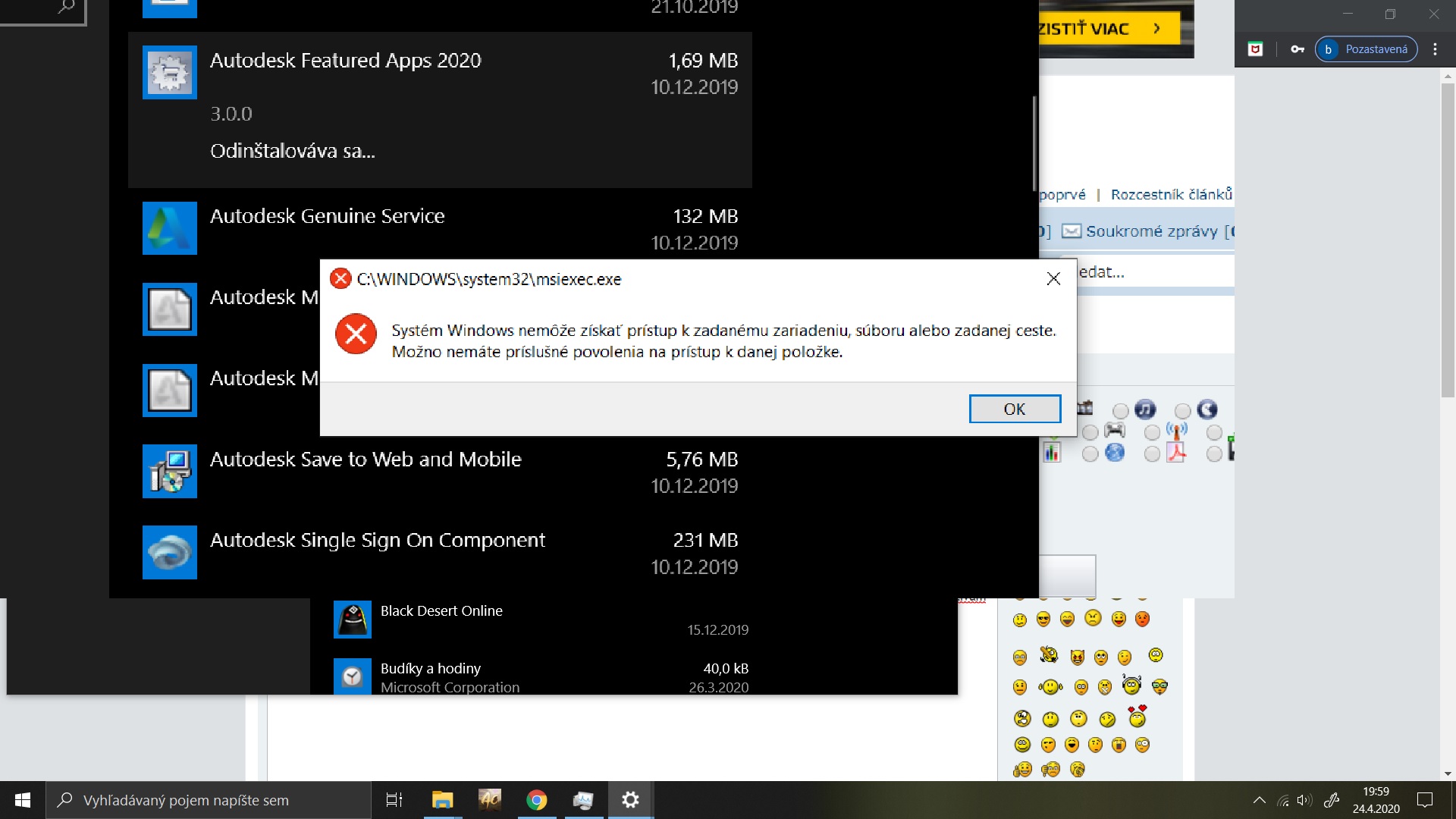Dobrý deň. Chcel by som sa spýtať, prečo mi odmieta odinštalovať subor autodesk. Teda to su už asi iba podsubory alebo čo, lebo aplikacie hlavné som už odinštaloval. Jedna sa o autodesk, čo som potreboval do školy na kreslenie, ale už ho nepouživam a niektoré verzie mi ani nešli. Tak som sa rozhodol to vymazať ale nechce mi to povoliť.