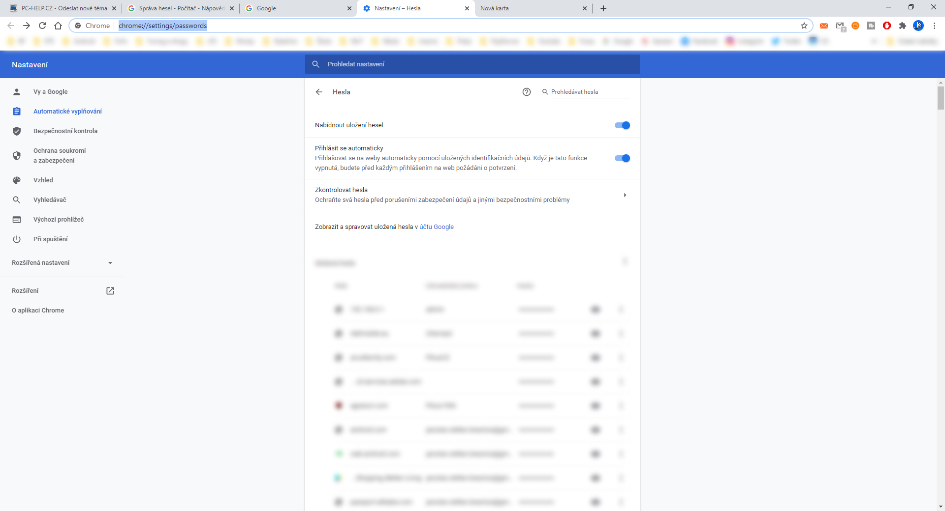 je to cca týden, co jsem si všiml, že z ničehož nic si prohlížeč Google Chrome nepamatuje hesla, loginy, automatické vyplňování formuláře,... Vše mám povoleno. Děje se to pouze na PC, které mám doma. V práci nebo na mém notebooku takový problém nemám. Nevíte někdo, co s tím? Hledal jsem na internetu, ale nic nepomohlo.