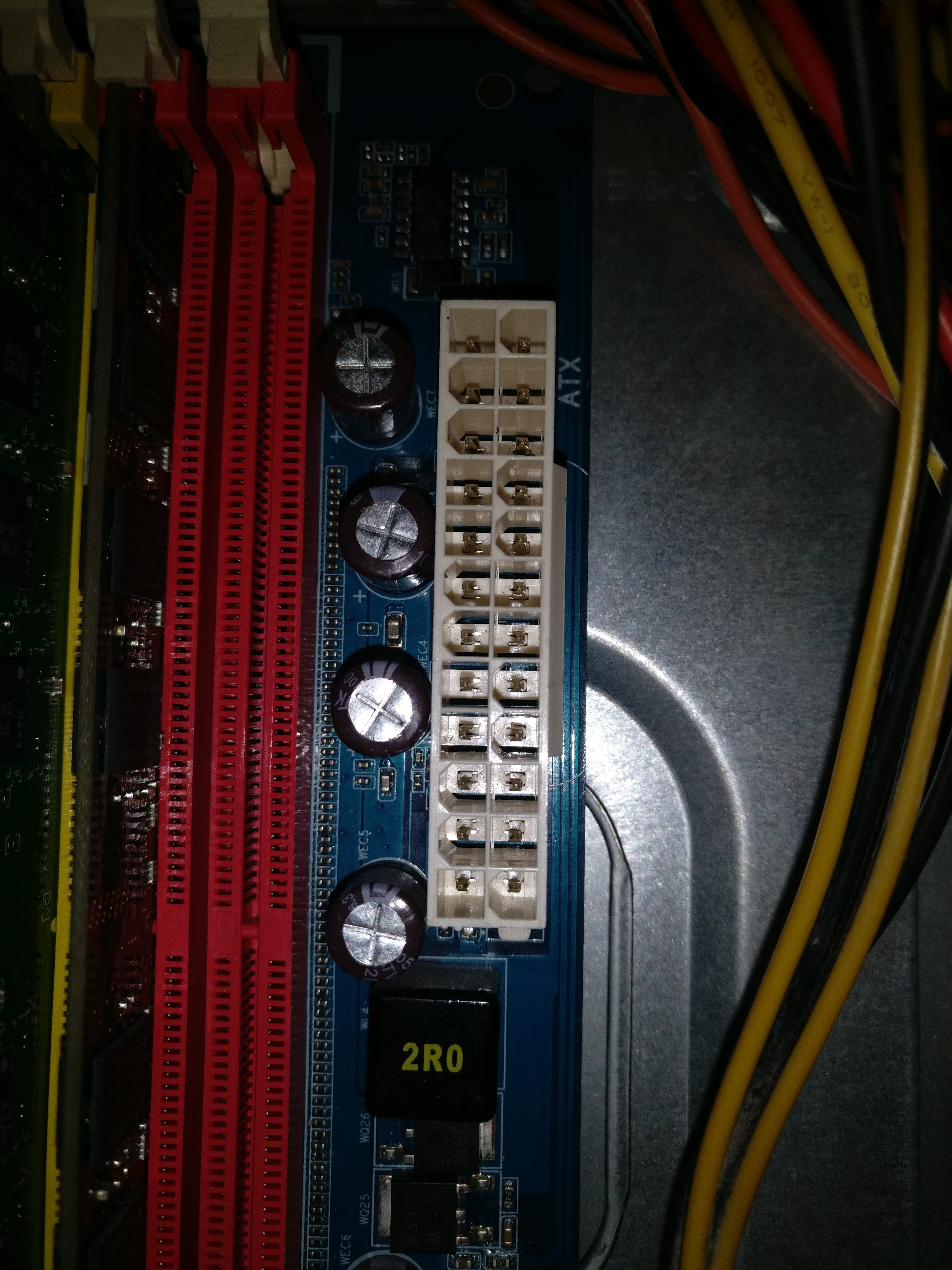 Připojuji fotky - myslím, že je to 24 pinový konektor na napájení základní desky a 4-pinový konektor k napájení procesoru.