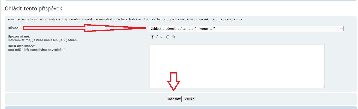 Drobné upřesnění: ohlásit příspěvek kliknutím na ikonu s vykřičníkem vpravo nahoře v okně příspěvkupetr22 píše: O odemceni staci pozadat administratora.