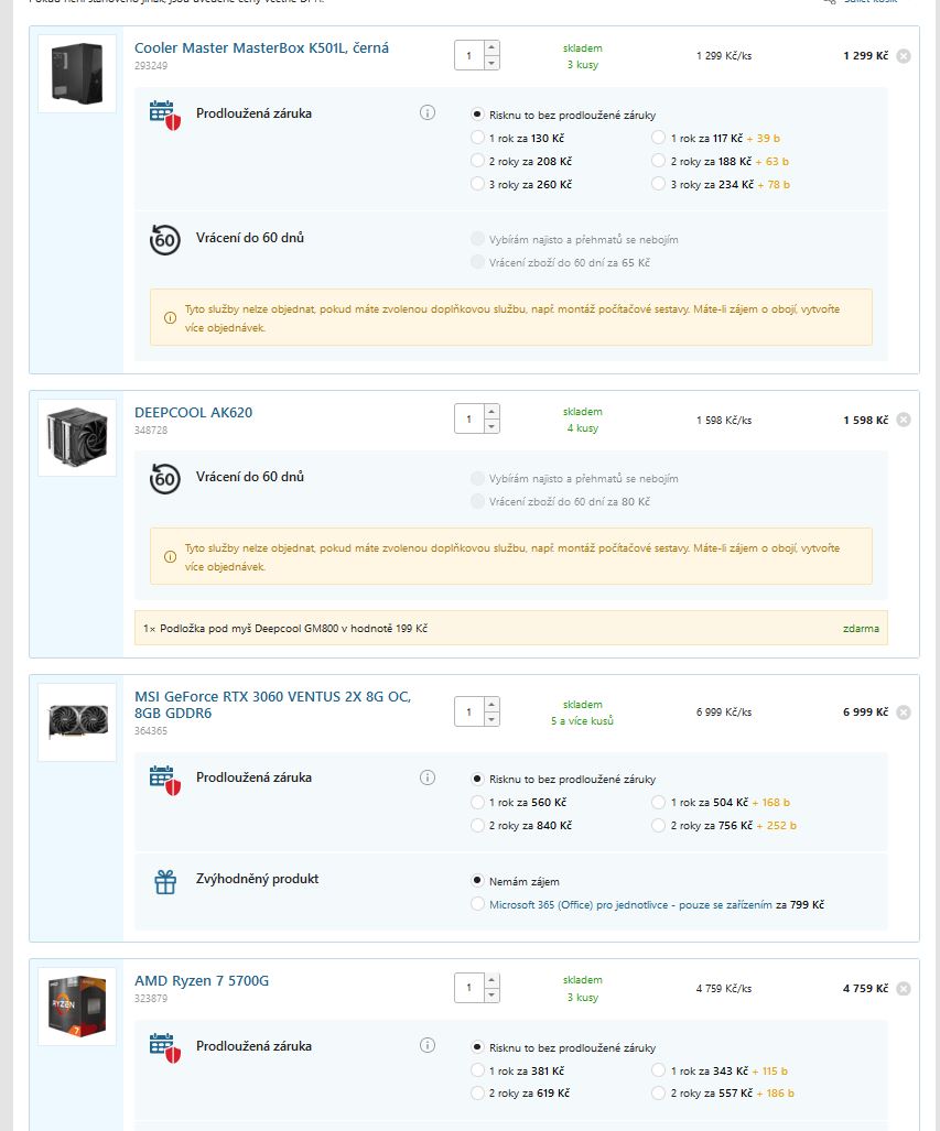 Dala sem na Vas a konfigurovala u CZC misto Intelu s AMD Viz prilozene screeny dva.