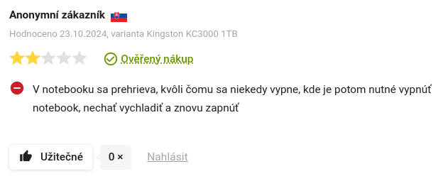 Mám 2TB verzi v pc a nijak moc se nezahřívá. V notebooku budou ale teploty vyšší. Zmiňovaný SK hynix Gold P31 má také chladič. Sehnat jde, ale mimo naši republiku: https://www.amazon.com/SK-hynix-Gold-PC ... B5LWY?th=1.