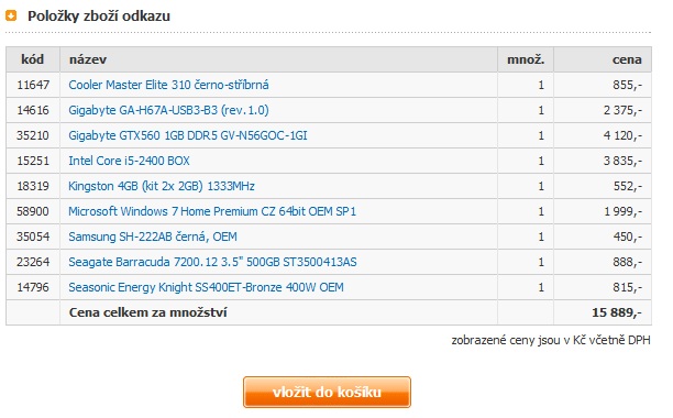 Jinak naco tam je deska s Z68 když by tam stačila klidně i H67 (http://www.alfacomp.cz/php/product.php? ... 0984YC14VZ), k tomu procesoru co nejde taktovat je to zbytečné vyhazování peněz,jestli by nebylo lepší tam dat i5-2400 (http://www.alfacomp.cz/php/product.php? ... 0984YJ12YC), ale dobudoucna je to možná užitečné, pokud by si v budoucnu kpoupil "K"