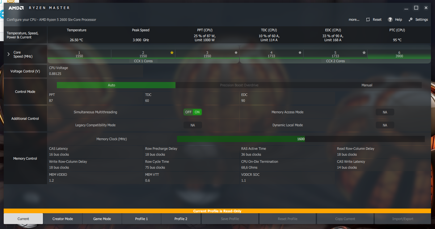 a jediné co jsem udělal tak u procesoru jsem snížil EDC(CPU) a to ve správě napájení musí být na balanced+v pokročilém nastavení jsem snížil řízení spotřeby procesoru u minimální stav procesoru na 5% , protože ve výchozím nastavení bylo nastaveno na 99% a byla neustálá zátěž.Po změně na 5% to vypadá takhle-